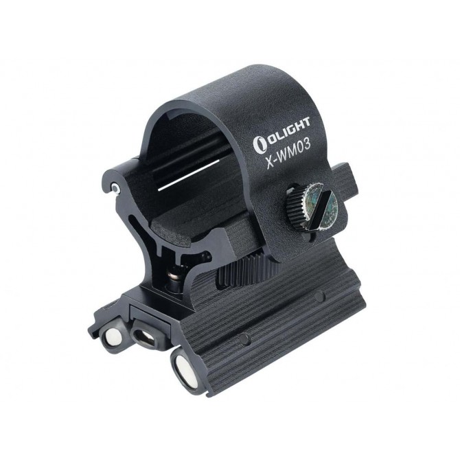 Esta es una excelente montura para una linterna Olight de caza, ya que la construcción del triple imán N52 presenta el doble de absorción magnética que la X-WM02 anterior. La abrazadera se despliega un total de 180° y utiliza un anillo ajustable para garantizar que su linterna sea firme y estable.