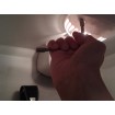 "Aquí me veis terminando de reparar la luz de una nevera. La carraca tiene el tamaño justo para poder trabajar en espacios reducidos como este y funciona como otras del doble de tamaño. También tuve que utilizar el pelacables de la multiusos para sanear la instalación. Me agradó comprobar que pela igual que cualquier pelacables profesional."