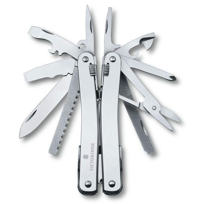 La empresa Suiza Victorinox ha desarrollado el alicate multiusos Swiss Tool Spirit X Ratchet que cuenta con un total de 36 usos, todas ellos fabricadas en acero inoxidable. Es un alicate extremadamente ligero, además incorpora cachas ergonómicas, para un mejor agarre. Las herramientas son bloqueables y accesibles desde el exterior. Un punto a destacar es el rápido acceso a la hoja principal.