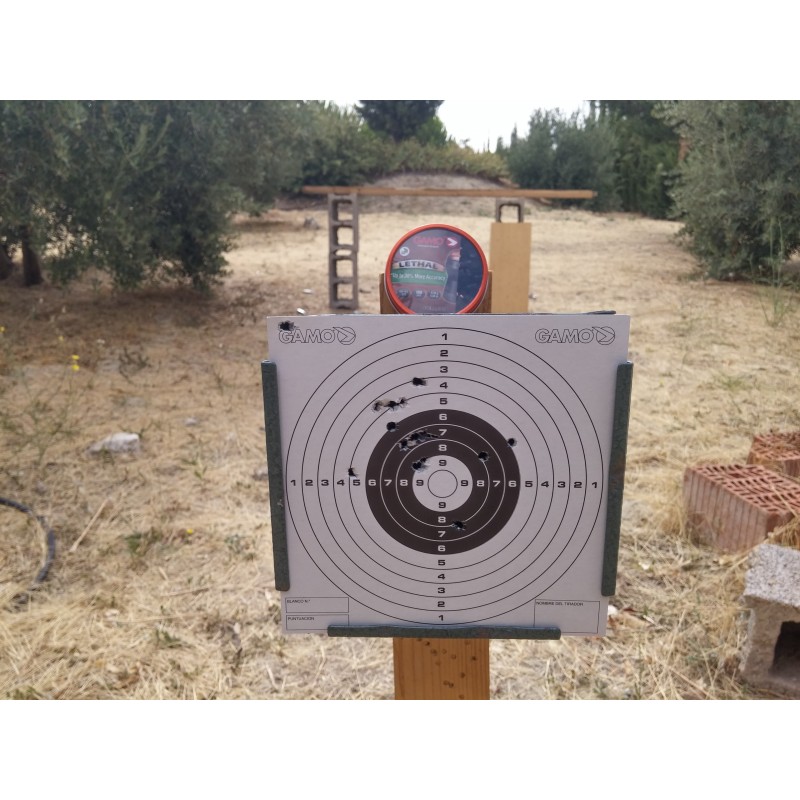 estos disparos están realizados con una pistola gamo blowback tactical con un Diábolo lethal a una distancia de 10 metros.