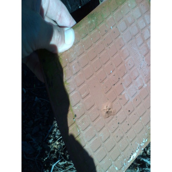 Despues de 7 disparos partio la losa de una manera muy limpia, que conste que lo intente con tres tipos de plomos distintos y ninguno consiguio esto.