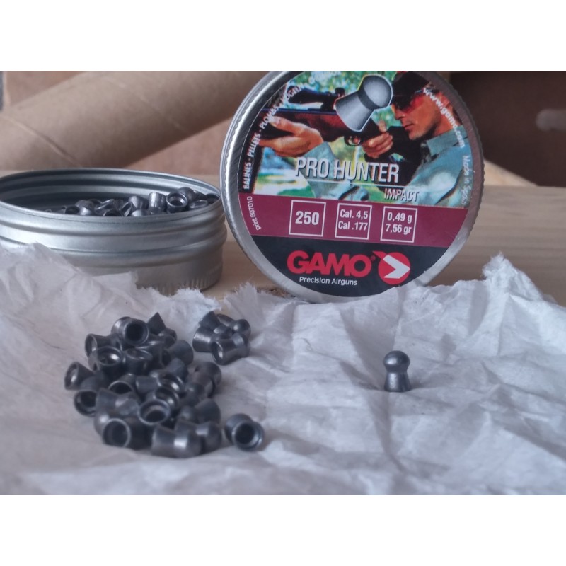 Balines Gamo con un peso medio de 7.56 g. perfecto para distancias medias. Fabricado en plomo y con un buen coeficiente balístico que la aporta estabilidad y precisión.