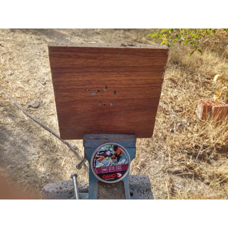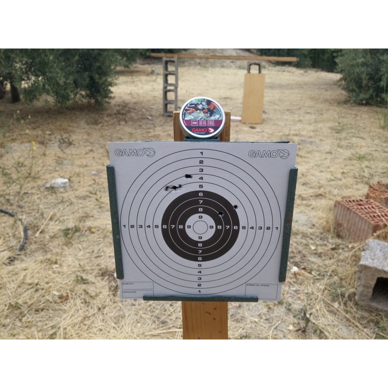 estos disparos están realizados con una carabina gamo wisper x con un Diábolo pro-búnker a una distancia de 10 metros.