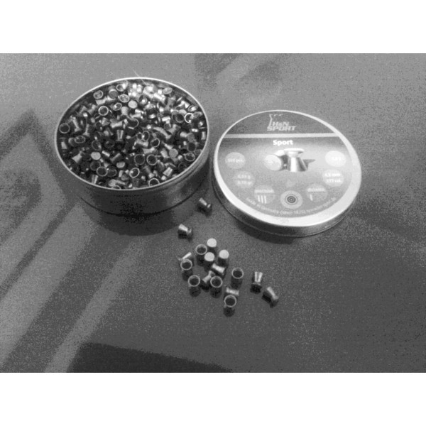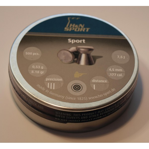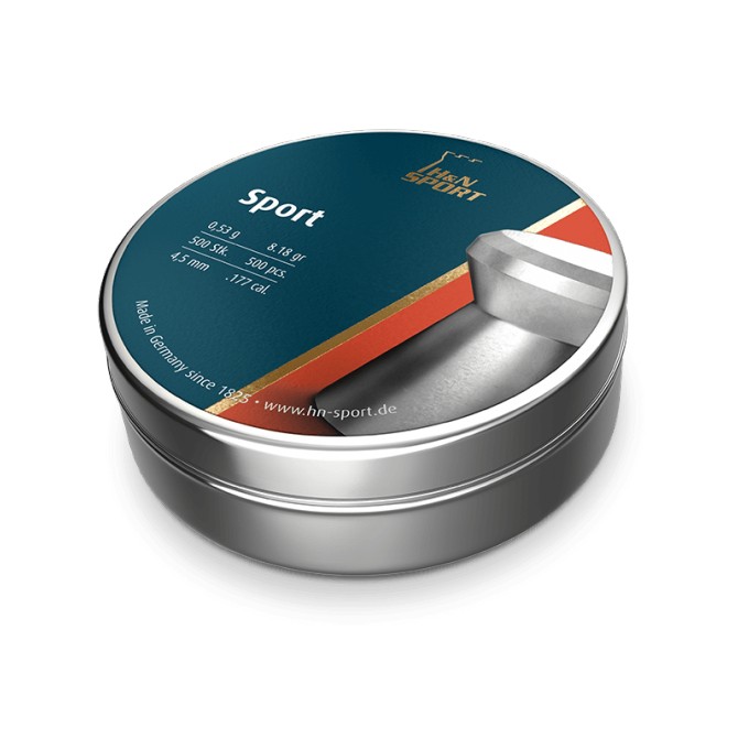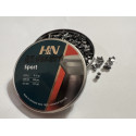 Balín H&N modelo Sport. Son unos balínes lisos ideales para entrenamiento debido a que su precio es económico y asequible tanto para tiradores aficionados que se inician en este mundo como para los más exigentes, puesto que tienen buena precisión de tiro. Magnífica relación calidad-precio. Calibre: 4,5 mm. Peso: 0.53 g