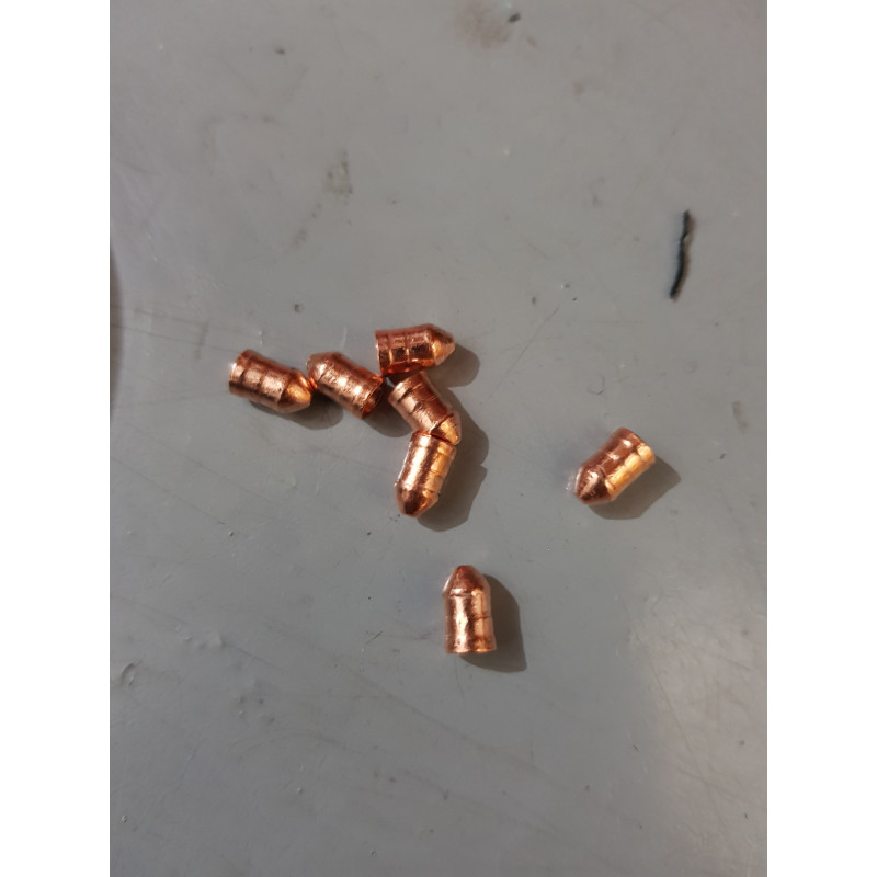 "Son con plomo y contaminan, aunque son muy buenos, pesados, precisos y es muy sencillo agrupar con ellos. Tienen un recubrimiento de cobre para que no te queden restos de plomo en los dedos, pero por dentro siguen siendo de plomo y contaminaran igual el medio ambiente. Ademas es muy probable que el recubrimiento de cobre mas duro que el plomo, dañe el cañón al disparar.