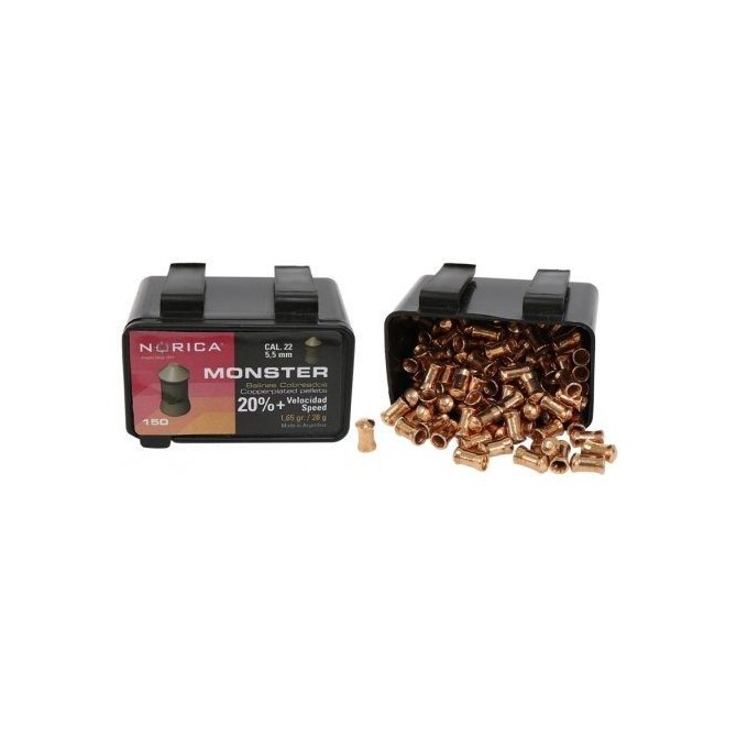 Los Norica Monster son unos balines de plomo y aleación de cobre diseñados para un equilibrio y precisión sublime. Cuentan con un diseño especial para tiro deportivo en distancias largas con rifles neumáticos, GRS o PCP. La caja de plástico ajustable a cinturón cuenta con 150 unidades.