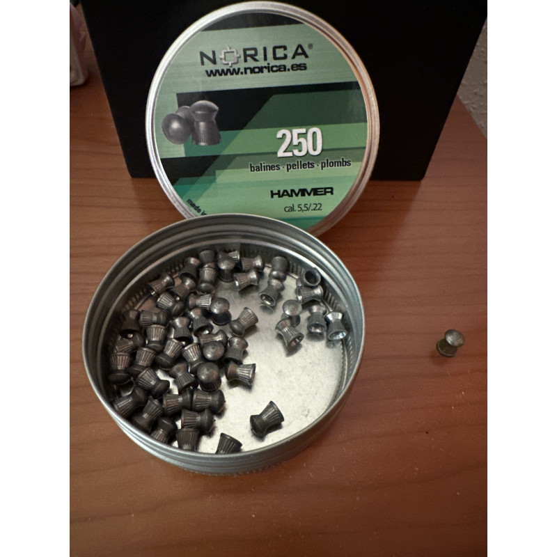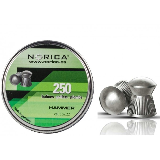 Los balines Norica Hammer han sido diseñados con un tipo de plomo de alta gama que cumple con todos los requisitos básicos de calidad y precisión para tiro deportivo. Disponen de una relación calidad-precio inmejorable, y su estructura es ideal en media distancia. La lata de 5,5 mm incluye 250 unidades.