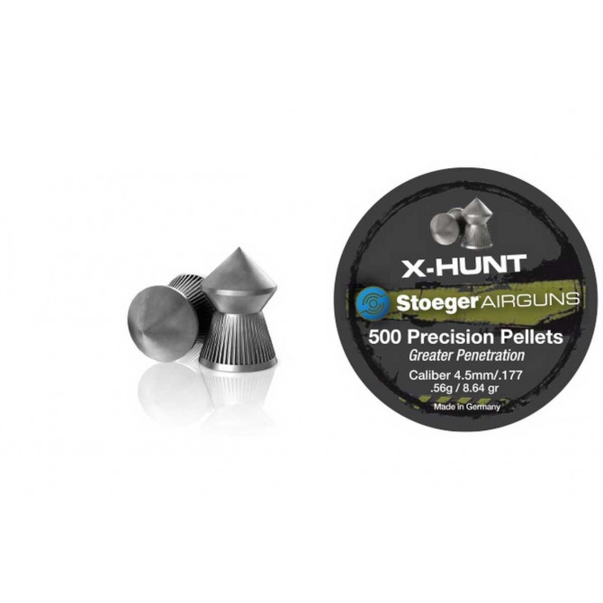Los balines X-HUNT de Stoeger son unos perdigones de peso medio que presentan un diseño aerodinámico para trayectorias planas garantizando una buena penetración. Destaca su punta puntiaguda y su falda estriada.