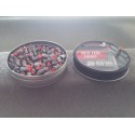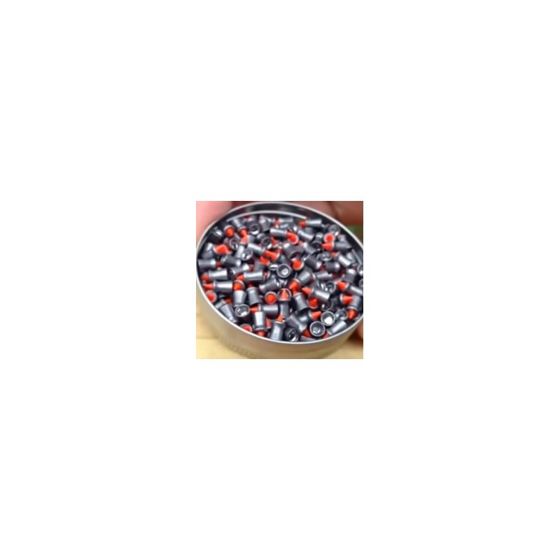 En la imagen se ve un balin de cerca que permite apreciar su impresionante punta roja, esta le da una calidad suprema al tiro mejorando mucho su precisión y sobretodo su capacidad de penetración.