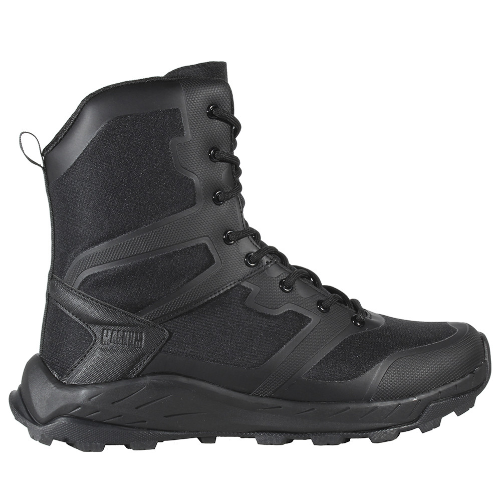 Las Magnum Mega Táctical HI Waterproof son unas botas de caña alta fabricada en nylon hidrófugo de alta calidad, con refuerzos de PU. Estos materiales de fabricación junto al forro antihumedad las hace muy cómodas y transpirables durante trabajos de larga duración. El diseño de la bota está pensado para que no tengamos molestias puesto que lleva lengüeta acolchada forrada, para proteger el empeine, además de incluir un tirador trasero para mejorar la comodidad a la hora de calzarlas.