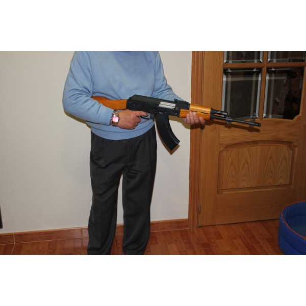 Esta carabina semi-automática es una réplica fiel de la original, que cuenta con la mayoría de las partes originales y comunes de la Kalashnikov AK47 real utilizada por el ejército soviético. Este fusil de asalto de origen ruso fue diseñado en 1944, por Mijaíl Kaláshnikov, durante La Segunda Guerra Mundial, perfeccionado en 1947 y producido desde 1949.