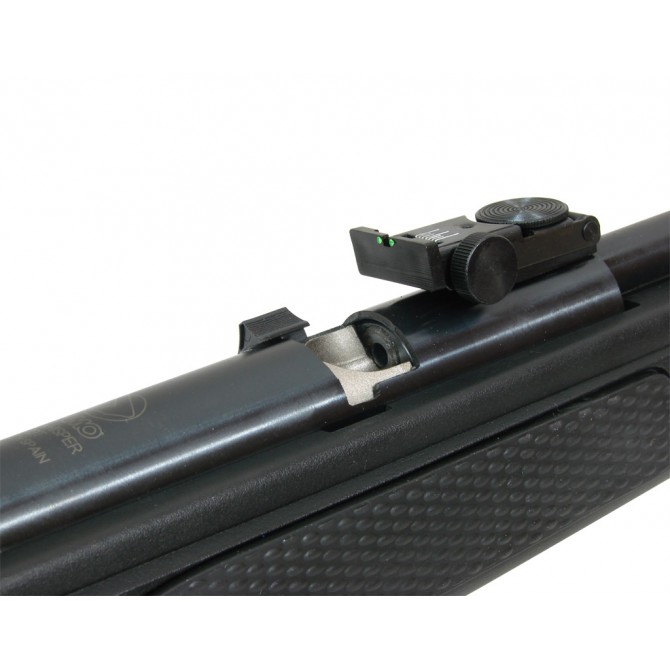 Además, este modelo fabricado en España posee una potencia de 20 Julios, por lo que es una carabina considerada como un arma de gran poder. Este magnífico dato le confiere una salida del perdigón de 305 m/s en 4,5 mm., y de 220 m/s en 5,5 mm. A su vez, incorpora un silenciador tipo Whisper, que reduce el sonido hasta en un 51%.