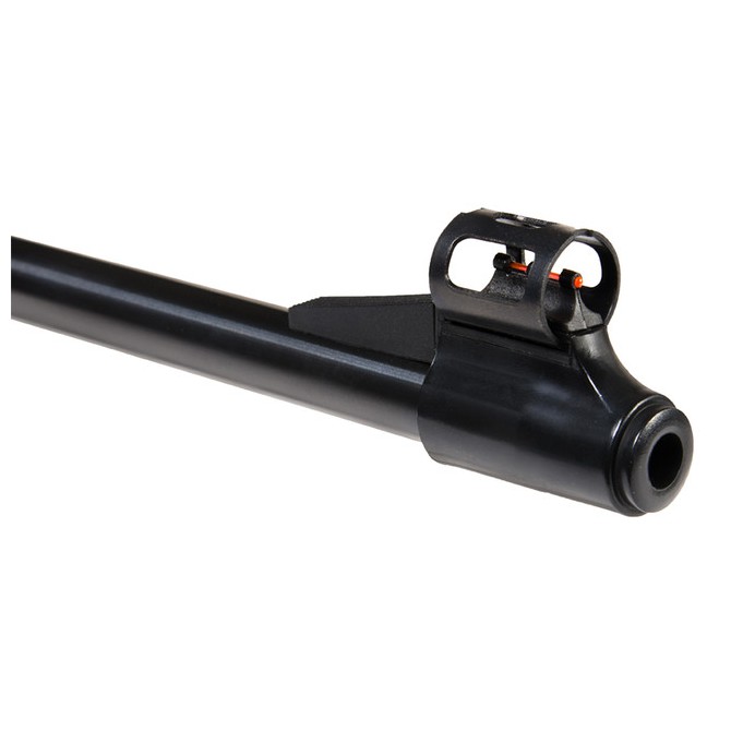 Óptica: La carabina está equipada con miras abiertas de fibra óptica Truglo, el alza es ajustable en altura y deriva. Incorpora un rail Dovetail (Cola de Milano) de 11 mm con una regleta con pin anti-Shock.