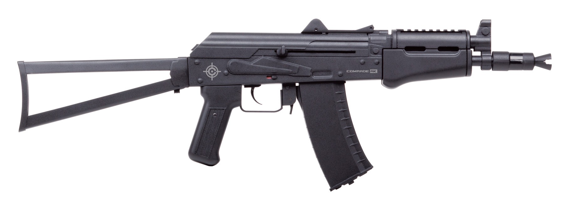 Carabina de Co2 con culata de fibra sintética plegable, de calibre 4,5 muy ligera, ideal para principiantes. Calibre: 4,5 mm Velocidad: 180 m/s Culata: sintética, desmontable.