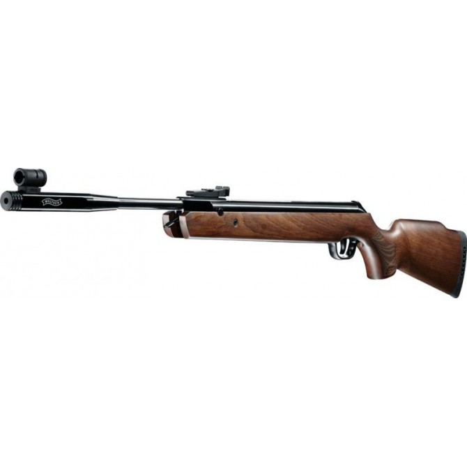 Carabina de aire comprimido con culata ambidiestra, fabricada en calibre 4,5. Culata en madera de haya acabada con material anti-choque y anti-vibración, mira y alza.