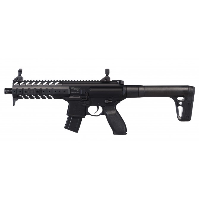 Creado a partir de la misma base sólida que su predecesor, el rifle de aire SIG MPX GEN II se ha actualizado obteniendo una mejor precisión con un diseño y controles modificados. Ahora cuenta con un guardamanos con sistema M-LOK, gatillo de hoja plana, agarre de ángulo reducido, una culata rediseñada y una cantonera de retroceso de perfil bajo. CARACTERÍSTICAS: - Generación 2 - Semi automático. - Sintética. - Guardamanos en polimero. - Grip frontal táctico. - Blowback interno. - Calibre: 4,5 mm (.177) Balines. - Capacidad: 30 tiros / Roto Belt Mag (Patentado). - Velocidad: 575 FPS. (Potencia máx. aprox.: 7 julios). - Rail Picatinny. - Seguro manual. - Color: Negro. - Cañón: Acero estriado. - CO2 (88 gr). - Miras plegables. - Largo: 654 mm. - Peso: 3 kilos (6,2 lb.).