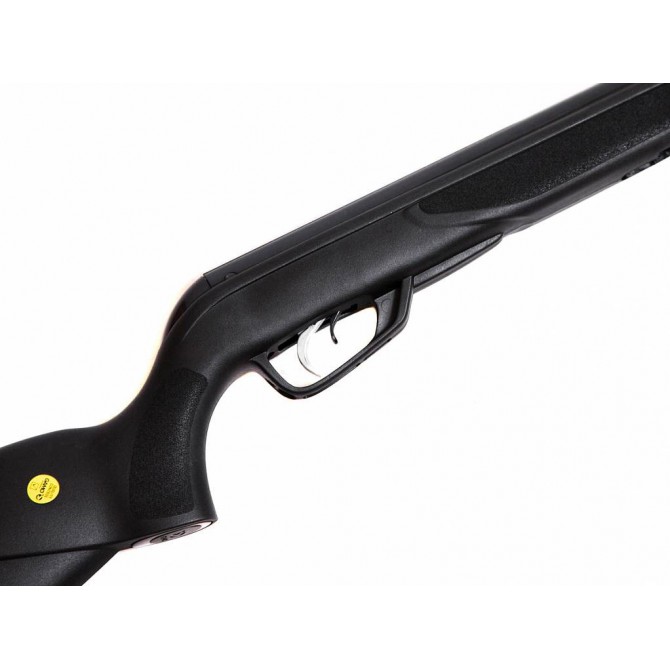 La Gamo Shadow 1000 es una carabina de aire comprimido monotiro fabricada para ambidiestros en tres calibres 4,5 mm, 5,5 mm y 6,35 mm. La potencia de salida llega hasta 24 Julios e incluye la mira micrométrica en Truglo. El cañón es de acero estriado abatible y la cantonera es ventilada para reducir el impacto del retroceso.