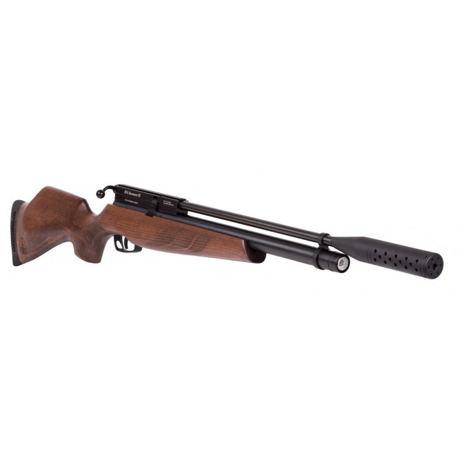 Ha sido creada por la prestigiosa marca BSA con unas cualidades y calidades inmejorables, ya que consta de una culata de madera tratada en color marrón y de un cañón flotante de acero estriado que le aporta una precisión sublime al tirador.