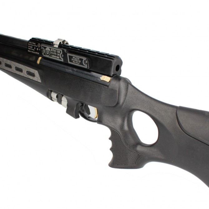 La culata desarrollada por el departamento de I+D de Hatsan para la creación de la BT65 SB es sencillamente genial, ya que ha sido diseñada en un tipo de fibra anti-impactos e inmune a distintos entornos hostiles. Además, cuenta con una carrillera regulable y cantonera de goma.