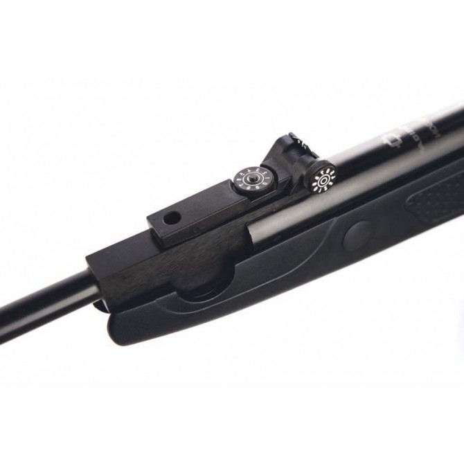 Óptica: La carabina está equipada con regleta para visor, y alza ajustable fabricada en fibra óptica.