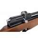 Mecanismo: Carabina ambidiestra con cañón de acero estriado, seguro de disparo manual y gatillo ajustable.