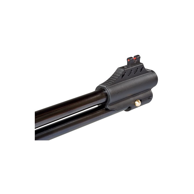 Óptica: La carabina está equipada con miras abiertas de fibra óptica Truglo, el alza es ajustable en altura y deriva. Incorpora un rail Dovetail (Cola de Milano) de 11 mm con una regleta con tope anti-retroceso.
