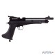 Mecanismo: Pistola-carabina ambidiestra con cañones de acero estriado, seguro de disparo manual y gatillo ajustable.