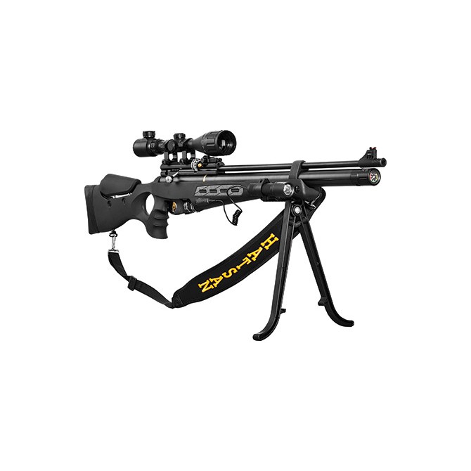 Esta carabina de aire pre-comprimido se acciona a través de un cerrojo clásico lateral, e incluye dos ranuras bajo el cerrojo para portar preparados dos cargadores extras. Así mismo, el depósito externo ofrecerá 250 Bar de presión, para tiros potentes y precisos sin retroceso.