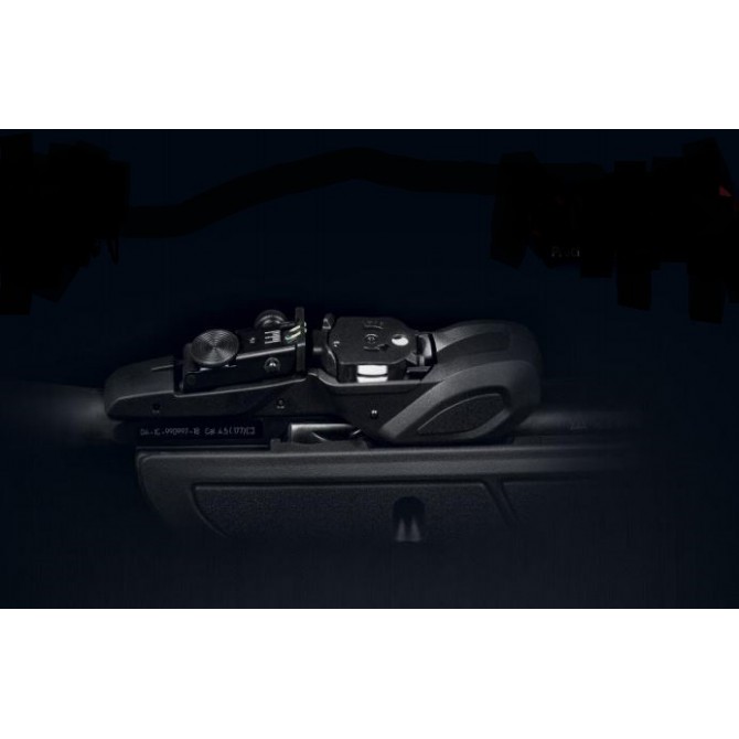 Óptica: La carabina está equipada con un rail Dovetail (Cola de Milano) de 11 mm con una regleta con pin anti-Shock y sistema RRR para reducir vibraciones al visor.