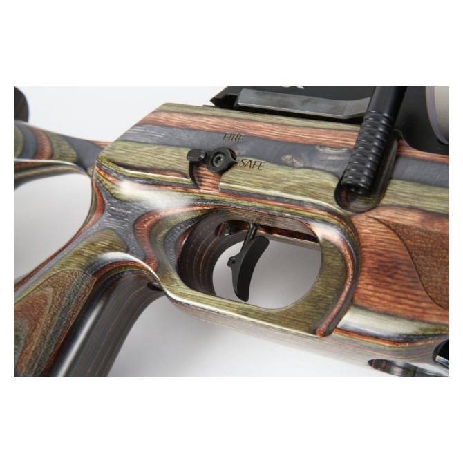 Mecanismo: Carabina ambidiestra con cañón reforzado de acero rayado e intercambiable. Seguro de disparo manual.