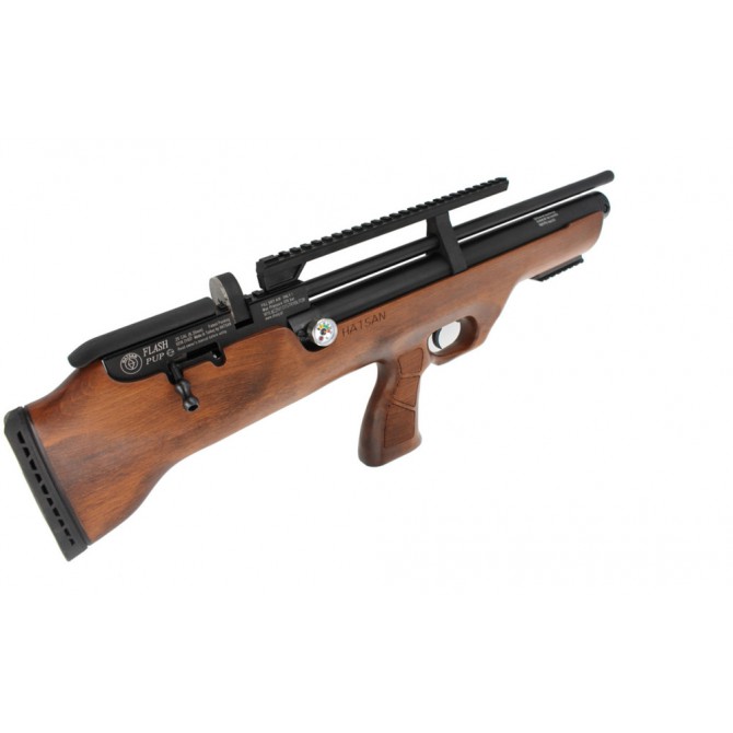 En cuanto a la óptica, la PCP Flashpup desarrollada en Turquía por Hatsan incluye Raíl de 11 y de 22 mm en la zona superior para instalación de visor. Además, incluye un Raíl Picatinny inferior para láser o linterna y un gatillo con tecnología Quattro regulable en presión y recorrido.