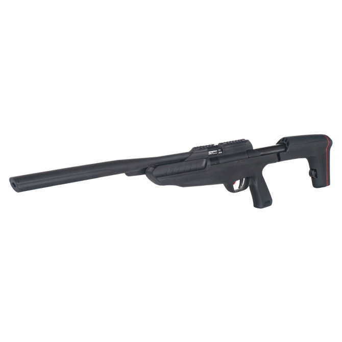 Este modelo de carabina de aire comprimido está accionado por resorte de última generación, con el que se generará una potencia total de 24 Julios, la máxima permitida por la legislación en España y Portugal. Además, el amartillado del arma se realizará con un sistema de leva lateral de mayor facilidad de carga.