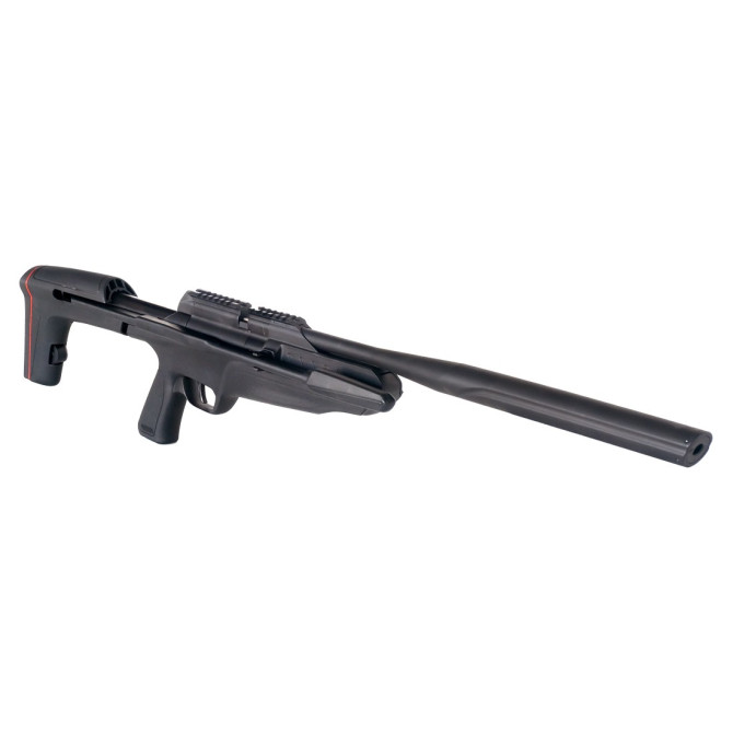 Mecanismo: Carabina ambidiestra con cañón de acero estriado, seguro de disparo manual y gatillo ajustable.