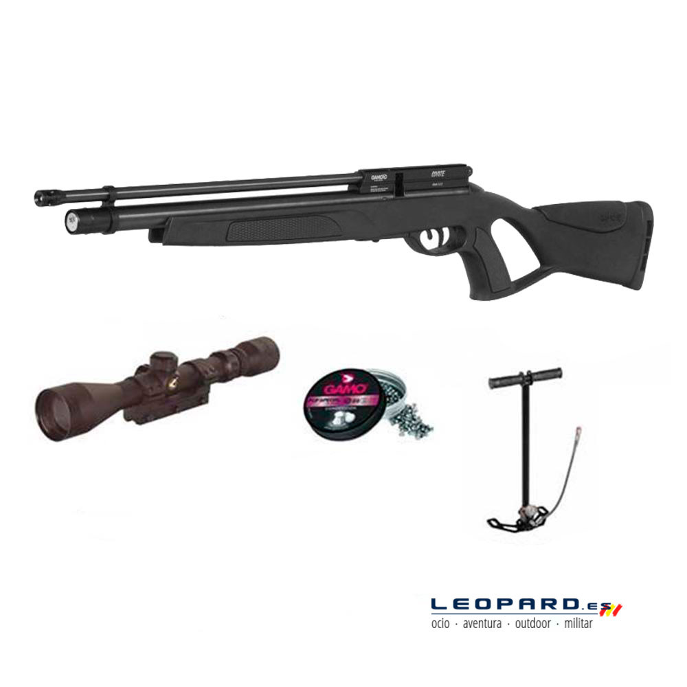 Los desarrolladores de Gamo han creado un magnífico pack que incorpora tres elementos básicos a la hora de disfrutar de una experiencia de disparo única y de altísimas prestaciones: