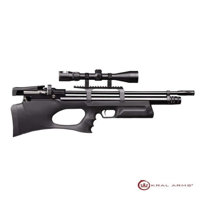 CARACTERÍSTICAS: - PCP - Calibre: 5.5 mm - Capacidad cargador: 12 Shots 5.5 mm - Capacidad del cilindro: 280 cc - Tiros por cilindro: (200 bar - 120 bar) 56 tiros - Presión de llenado: 200 Bar - Culata sintética - Largo cañón: 53,5 cm - Largo total: 73 cm - Peso: 3.40 kg - Se carga por palanca lateral. - Gatillo ajustable - Visor NO incluido.