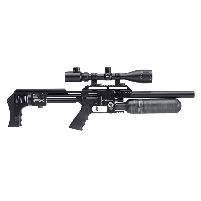 La prestigiosa marca sueca FX ha diseñado esta PCP Impact MK2 con un acabado negro. La versatilidad es la característica más importante de esta carabina, debido a su recamara y cañón intercambiables el usuario puede usar el calibre deseado en cada situación (4,5/5,5/6,35) sin perder nada de precisión.