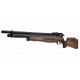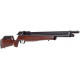 La culata de este rifle de aire comprimido está fabricada en madera de nogal y cuenta con carrillera ajustable y cantonera de goma. Además, incorpora un cañón de acero estriado con supresor de sonido integrado.