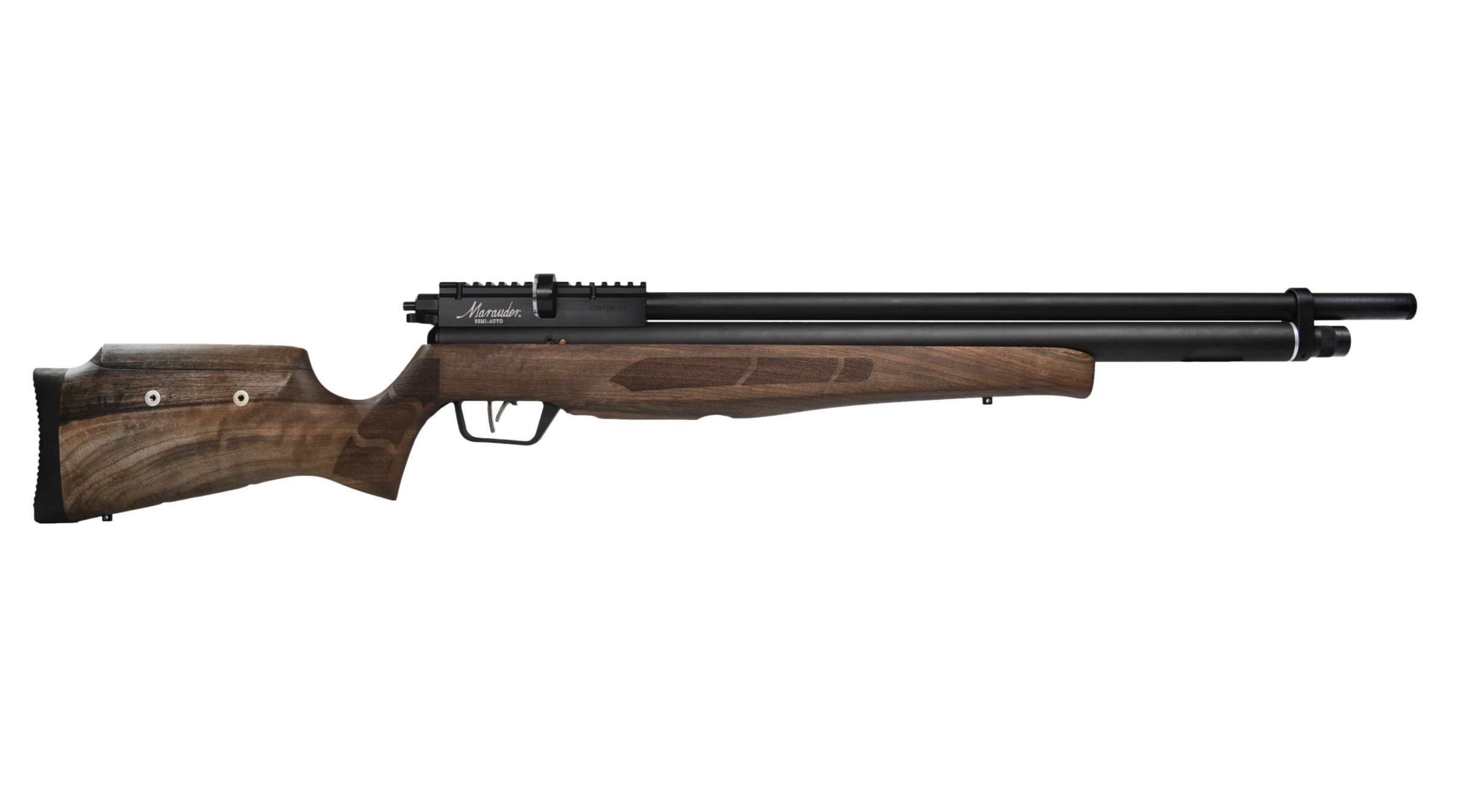 La carabina semiautomática PCP Marauder en calibre 5,5 mm se acciona mediante un cerrojo reversible que garantiza una gran precisión. Este rifle de aire comprimido PCP semiautomático permite disparar los balines de una manera rápida, precisa y fiable, por lo que es ideal para tiro al blanco o caza menor.