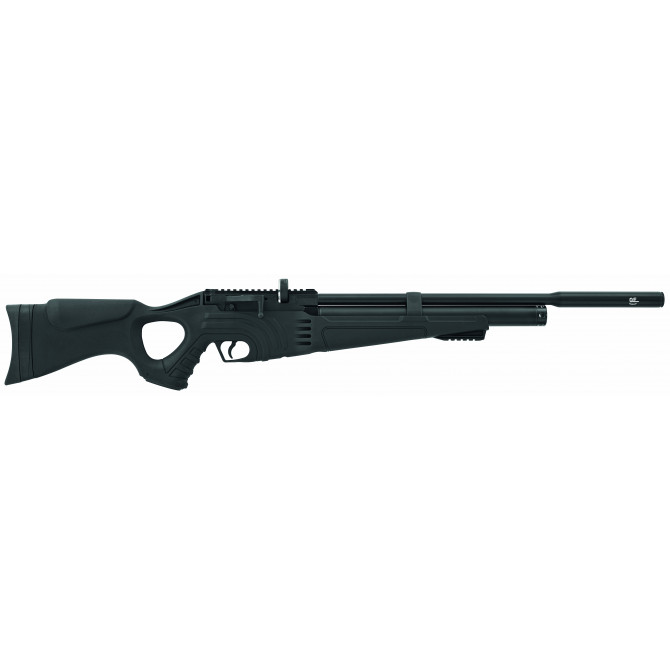 Esta carabina de aire pre-comprimido es una carabina de la marca Hatsan de grandes prestaciones. Su cañón reforzado de acero estriado posee la tecnología Quiet Energy y un moderador de sonido, que reduce hasta un 50 % del ruido que produce el disparo.