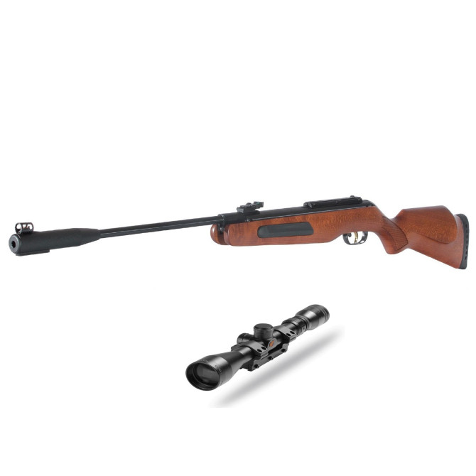 El cuerpo de la carabina también es realmente increíble, ya que la Gamo Máxima tiene un cañón de acero estriado que aumenta la precisión del disparo y una culata diseñada en madera de haya. El acabado es realmente espectacular y su estructura ergonómica permite la realización de sesiones largas de tiro sin fatiga.