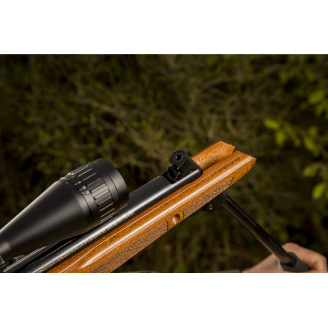 En primer lugar, destacar que este Winchester es una carabina de aire comprimido monotiro, con el cañón de acero estriado. Además le ofrece la posibilidad de escoger entre dos calibres: 4,5 mm y 5,5 mm, por lo que el tirador podrá escoger entre una mayor velocidad de salida del perdigón o un mayor impacto sobre el objetivo. Esta condición mejorará en gran medida la experiencia de disparo. Cámara de 29 mm. Tiene 16 julios de potencia.