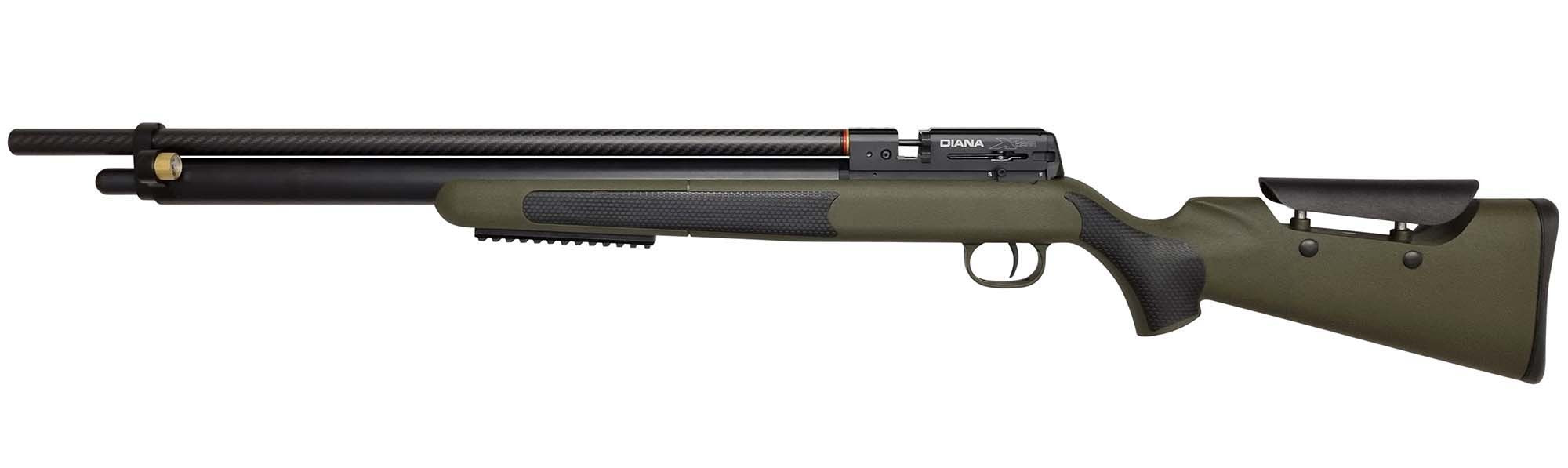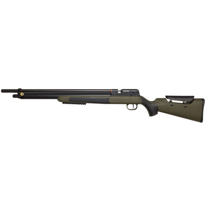 Carabina de marca Diana del calibre 4,5 mm. Su cuerpo de polímero en color verde OD posee estilo Montecarlo. Cañón Lothar Walther y regulador ALTAROS para una velocidad constante. Su depósito tiene una capacidad de 280 cc y una presión máx. recomendable de 200 bares. Cargador de hasta 14 balines y adaptador para tiro doble. Carrillera y gatillo ajustable según las preferencias del tirador.