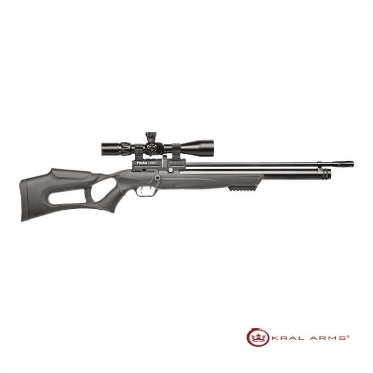 CARACTERÍSTICAS: - PCP - Calibre: 5,5 mm - Capacidad cargador: 12 Shots 5,5 mm - Capacidad del cilindro: 280 cc - Tiros por cilindro: (200 bar - 100 bar) 100tiros - Presión de llenado: 200 Bar - Largo cañón: 53 cm/20.9 inch - Largo total: 100 cm/33.1 inch - Peso: 3,30 kg - Culata sintética de alta calidad. - Se carga por cerrojo lateral. - Gatillo ajustable. - Con regulador de potencia. - Visor NO incluido.