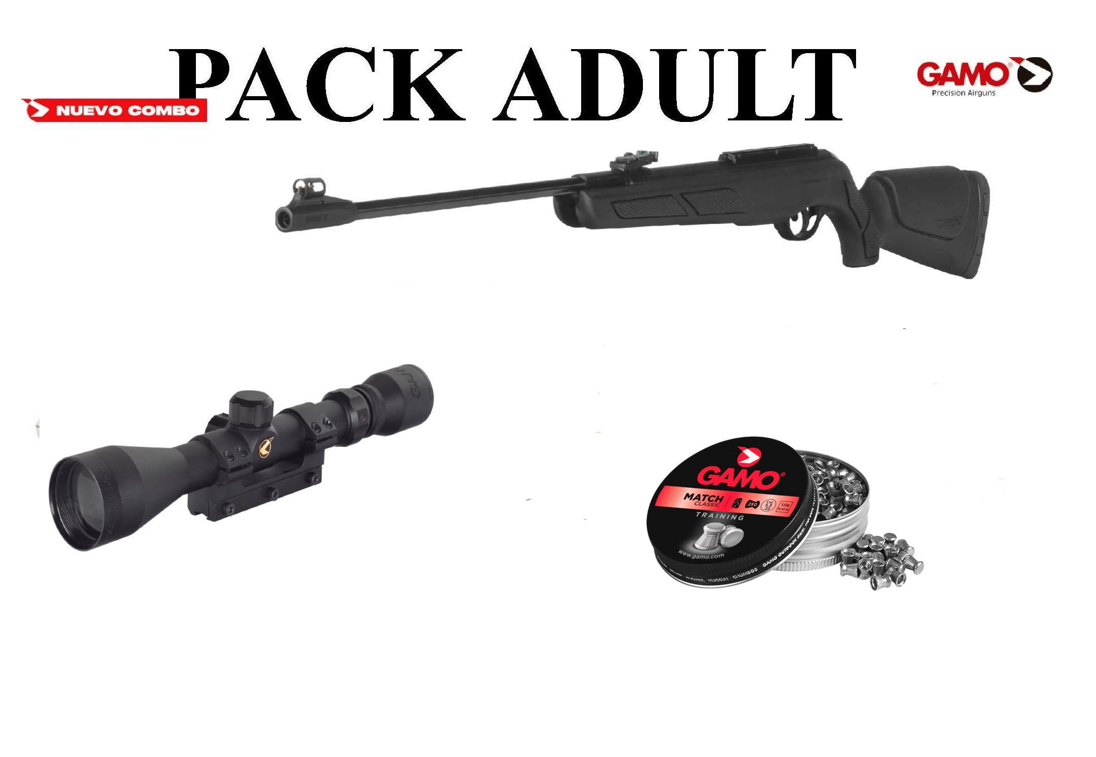 Los desarrolladores del departamento de I+D de Gamo han desarrollado este fantástico pack con el objetivo de ofrecer todos los elementos necesarios para una práctica de tiro deportivo completo. Por este motivo, han incorporado un visor con 9 aumentos, 40 mm de campana y resistente al agua. Además, han añadido dianas y balines de precisión extrema.