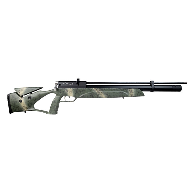 La Norica NTX 35 Commando es la evolución definitiva en carabinas de tiro deportivo, con un impresionante acabado en camuflaje que la convierte en una opción visualmente atractiva y funcional. Equipado con el cañón Norica Truechoke, un cañón estabilizado de precisión con choke y punta roscada ½ UNF, garantiza una mayor precisión y versatilidad, especialmente para el uso de supresores de sonido. La NTX 35 Commando integra también el nuevo Sistema de Gatillo Ajustable Norica EVO, que permite ajustar el disparador (200-400 gramos). Su regulador de presión de aire EVO proporciona una regulación más precisa, logrando una velocidad de disparo constante para una mayor precisión en cada tiro. Además, la culata de fibra anti-choque, ambidiestra y con diseño thumbhole, junto con una carrillera regulable, asegura comodidad y control.