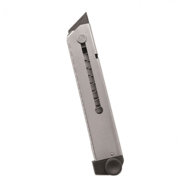 Cargador de repuesto para la pistola detonadora ME P08 9 mm. Tiene una capacidad para poner 4 cartuchos de fogueo de calibre 9 mm.