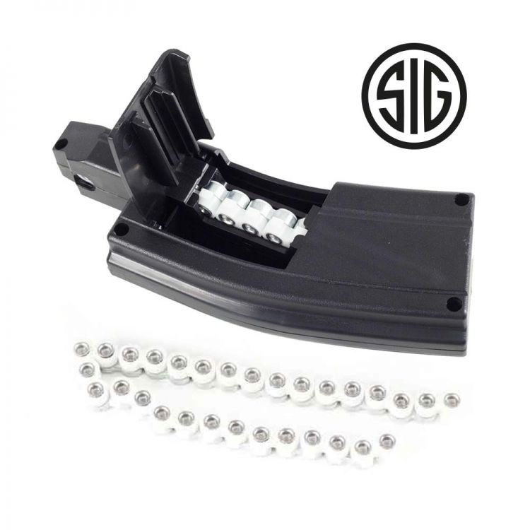 Cargador para SIG Sauer MPX ASP y para MCX ASP. Capacidad para 30 balínes. Incluye 3 cintas.