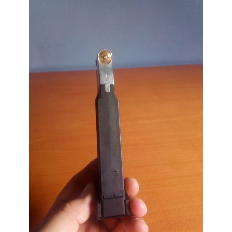 "Aquí se puede ver el compartimento para las bolas de acero BBS,se cargan por el orificio que se ve en la parte superior del cargador,el sistema de carga no es muy cómodo pero te hacés a el con dos cargas."