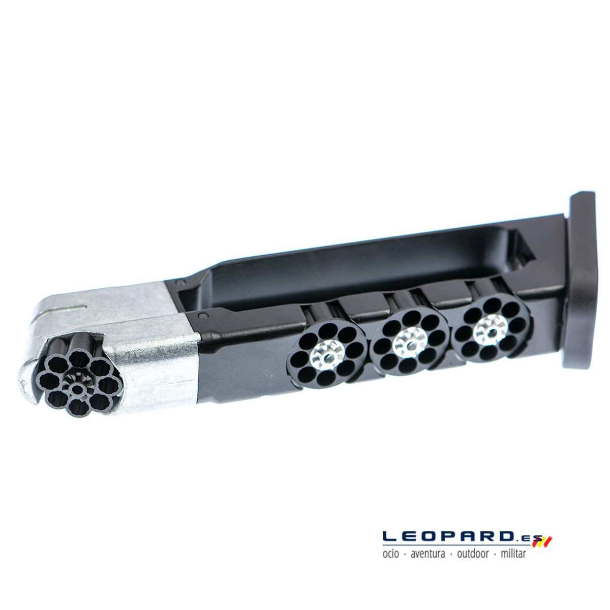 Ya puedes comprar algún cargador más de repuesto para la Glock 17-2. Lleva incorporado 4 tambores rotativos (uno de ellos para 8 bolas de acero BBs, y otros tres para 8 perdigones). Además en el mismo cargador es donde colocas la bombona de 12 gramos.
