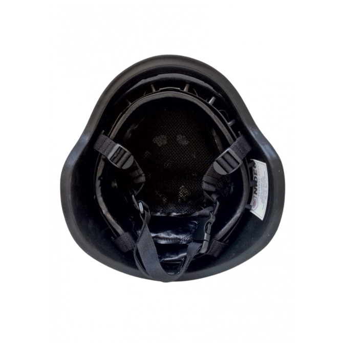 El casco se fabrica mediante un sistema “composite” propio de prensado de tejido aramida y polietileno de ultra alta densidad molecular (UHMW-PE), que le otorga un excelente peso, protección balística y de impactos y retardante al fuego.